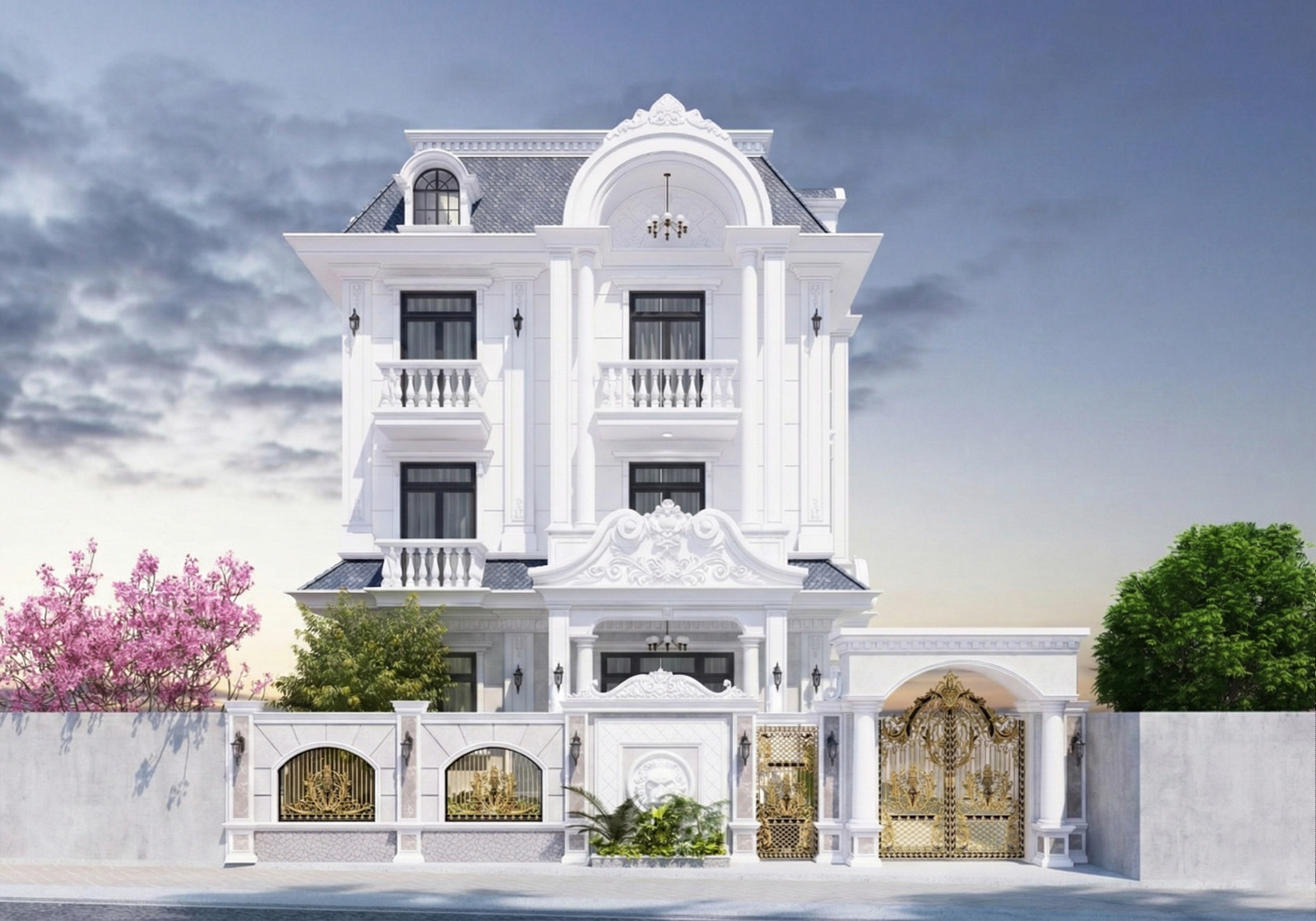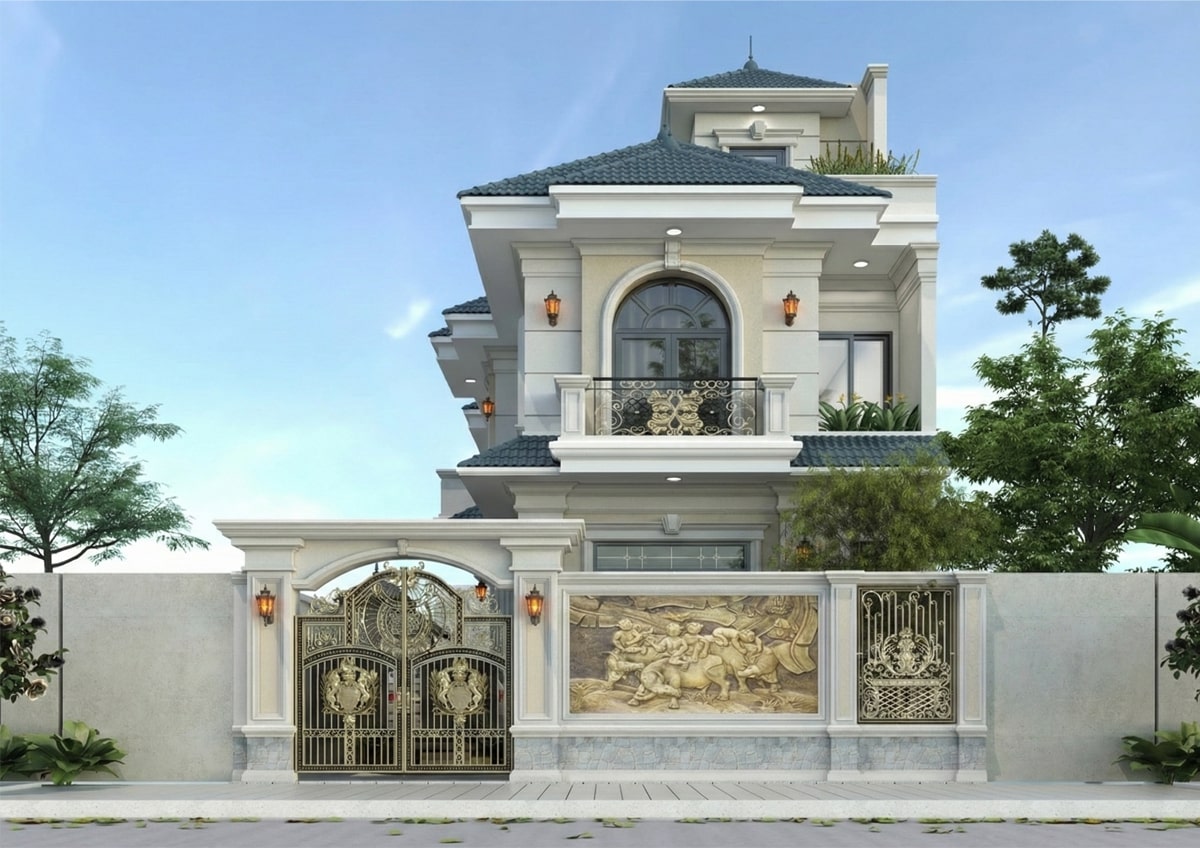 Phong cách thiết kế biệt thự cổ điển là một trong những loại hình thiết kế kiến trúc được xây dựng trên một diện tích đất rộng lớn & kiểu dáng được lấy cảm hứng từ lối thiết kế phong cách Châu Âu với những điểm nhấn ấn tượng và sắc xảo. Biệt thự tân cổ điển được thiết kế một cách tỉ mỉ, tinh xảo, sử dụng những đường nét hoa văn, họa tiết, phào chỉ để trang trí cho không gian mặt tiền & đặc biệt sử dụng mái vòm thể hiện sự uyển chuyển, tráng lệ và nguy nga cho căn biệt thự đẹp. Nếu như gia chủ muốn thể hiện được sự sang trọng và đẳng cấp, cổ kính cho ngôi nhà của mình thì phong cách kiến trúc cổ điển sẽ là một sự chọn lựa hoàn hảo nhất cho không gian sống của gia đình mình.
